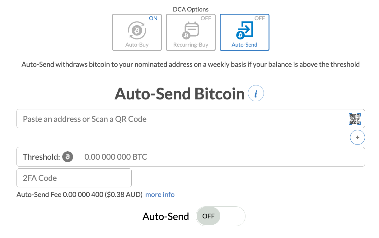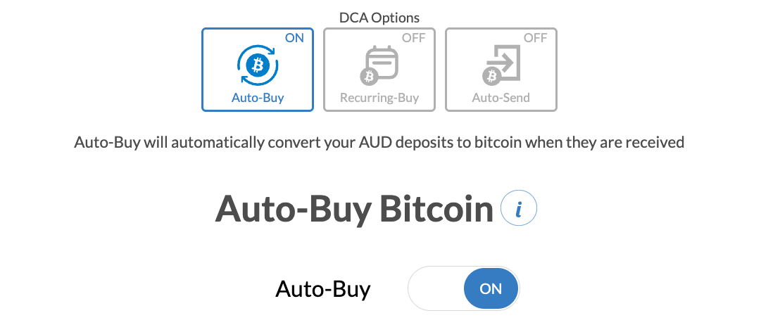 Our Auto-Buy feature will automatically buy bitcoin with any AUD funds deposited by either PayID or EFT.