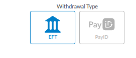Then, choose your withdrawal type at the top of the page that appears, EFT or PayID: