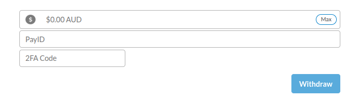 For PayID, simply input your amount, PayID and 2FA code (if enabled) and press Withdraw: